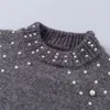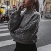 Camisola casual feminina femme roupas agulha grossa manga longa o pescoço pulôver camisola outono inverno casual solto pérolas suéteres