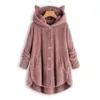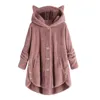 Suéter feminino inverno tecido lã quente fofo gato botão orelha casaco coreano kawaii com capuz pulôver solto