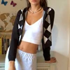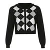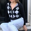 Blusa de moletom xadrez com zíper, casaco feminino vintage de manga longa, de malha, escola escolar