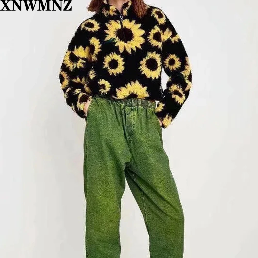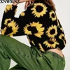 Za outono inverno camisa suéter feminina de lã de girassol de manga longa estampa coreana nova moda para mulheres