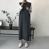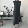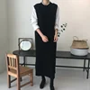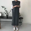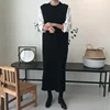Suéter longo de malha feminino com gola redonda, pulôver solto, quente e grosso, blusa da moda para outono e inverno