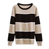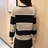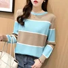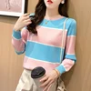 Pulôveres femininos para outono e inverno, suéter de malha listrada casual coreana, gola redonda solta, suéter quente para mulheres, 2020