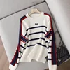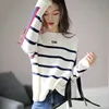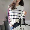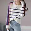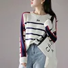 1pcs das Mulheres Plus Size Blusas 2021 Inverno Nova Moda Malha de lã Stripe Emenda Em Torno Do Pescoço Jumper Camisola Das Senhoras Camisola