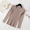 Suéter feminino básico com gola v e botões, blusão feminino slim, tricô, outono e inverno 2020