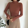 Pulôver feminino gola alta casual, outono inverno, blusas coreanas, moda 2020, suéter feminino