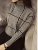 Pulôver feminino com gola alta, roupa casual folgada, edição han grossa de manga comprida, vestidos de malha lxj974