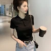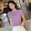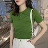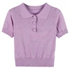Camisola de malha feminina roxo fino casual coreano colheita camisola de manga curta polo estudante camisolas pull femme 2021 verão topos