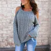 Novo suéter de malha de manga longa, gola redonda, sem alças, mulheres, outono e inverno