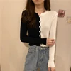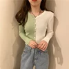 Cardigan de malha feminina estilo preppy retalhos contraste cardigan camisola de malha o pescoço primavera outono camisola malhas topos de colheita