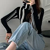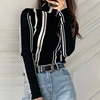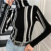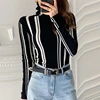 Moda feminina chique gola alta pulôveres blusas outono manga cheia listrado feminino de malha topos
