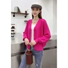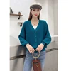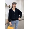 Suéter cardigã com decote em v para mulheres, 6 peças, elegante, sólido, quente, suéter macio, casaco, blusa, outono inverno
