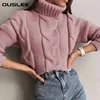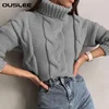 Ouslee outono gola alta pulôver suéteres inverno curto camisola feminina de malha casual macio jumper moda manga longa topos femme