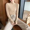 Camisa de camisola de gola alta de botão de moda de outono ins camisas femininas pulôver de malha sólida ldies