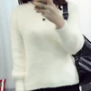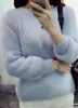 2020 outono inverno feminino pullovers rosa branco camisola mohair o ncek solto lanterna manga doce collor camisola