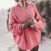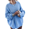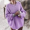 Suéter manga comprida estilo morcego, decote redondo, folgado, de malha sólida, túnica feminina