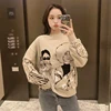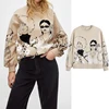 2020 nova mulher outono inverno menina impressão camisola de malha o pescoço manga longa camisola pulôver casual malha superior