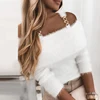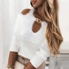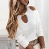 Suéter de outono cordões gola canoa sexy inverno, moda outono mulheres casual manga longa pulôver tops