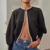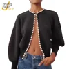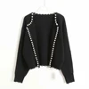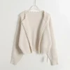 Suéter feminino com malha sólida, para primavera inverno, de manga comprida, com gola em o, preto, casual, vintage, blusas, cardigan