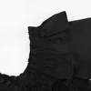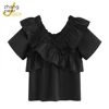 Blusa preta feminina com babados, camisa slim coreana chique manga curta