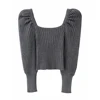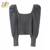 Pull puff manga longa das mulheres suéteres moda pulôver de malha camisola macia pescoço quadrado feminino jumper superior jérsei puxar