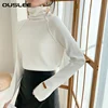 Outrene suéter feminino de gola alta, outono inverno elegante, magro, pulôver de malha feminino, casual, elástico, suéter feminino