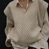 Colete feminino de malha suéter feminino forte gola v sem mangas