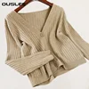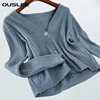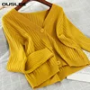 Outrene casaco cardigã feminino com manga longa, blusão curto de malha canelada feminino, suéter casual macio, roupa esportiva, primavera 2021