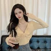 Suéter justo com decote em v, pulôver de malha justo sexy para mulheres, blusa sólida de alta elasticidade para primavera e outono de 2021