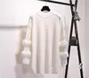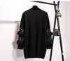 Suéter de manga longa com pérolas e gola alta, pulôver casual