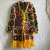 Casaco de lã feminino, plus size, manga comprida, borlas nacionais, com capuz, 2021
