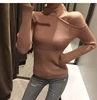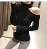 Camisola sensual de malha com ombro de fora, pulôver justo e elegante de cor sólida, outono e inverno, rosa, 2020