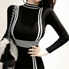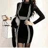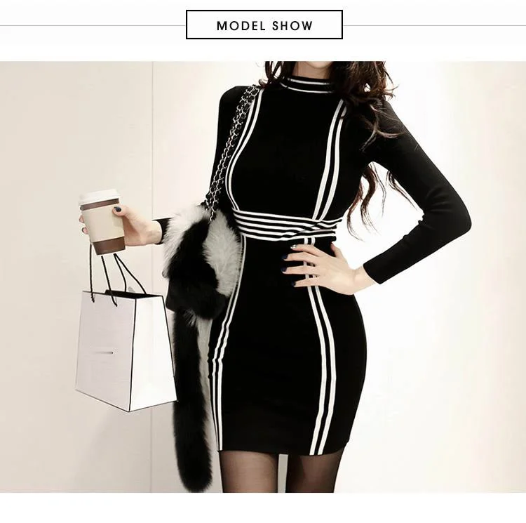 Vestido de malha de cintura alta feminino, vestido de inverno com manga longa temperamento versão coreana ol