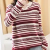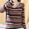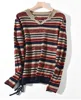 Suéter solto listrado com decote em v, pulôver feminino malha casual outono inverno 2021