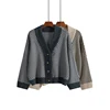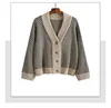 Suéter versão coreana de lã solto feminino, jaqueta versátil com decote em v de manga comprida, listrado, outono 2020