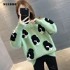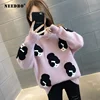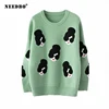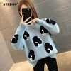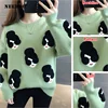 Agulbo suéter feminino tricotado patchwork, blusão feminino com alta elasticidade, gola redonda, outono inverno