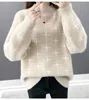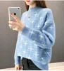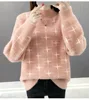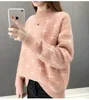Pulôver feminino para outono e inverno, suéter feminino de manga comprida, blusão solto de malha de veludo, plus size