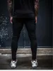 Calças de brim da motocicleta dos homens da listra do lado preto magro calças de brim da cor sólida do hip hop para homens
