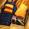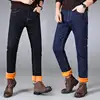 2020 inverno novos calças de brim quentes dos homens de negócios casual elasticidade densamente magro denim calças da marca preto mais tamanho 40 42