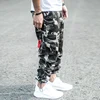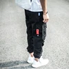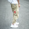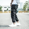 Streetwear moda masculina calças de brim solto ajuste multi bolsos carga casual drawstring designer hip hop joggers calças largas perna