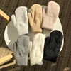Bonito dupla camada coelho luva de cabelo feminino meninas inverno grosso macio macio luvas cor sólida presentes de natal ao ar livre luvas quentes