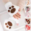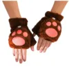 Mulheres gato garra pata de pelúcia luvas bonito quente macio pelúcia curto fingerless fofo urso gato luvas traje metade dedo luvas