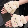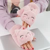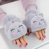 Bonito grosso coelho pele malha luvas de pelúcia fingerless luvas flip metade dedo condução luva inverno macio quente luvas para mulher menina