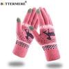 Buttermere luvas brancas de tricô, mulheres homens toque screen padrão cervo natal quente masculino feminino luva fashion
