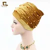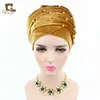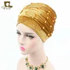 Turbante feminino de veludo com contas, lenço de cabeça perolado extra longo de veludo