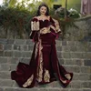 Lorie vestido de noite cafcaftan do marrocos, com apliques de trem destacável, rendas douradas, manga comprida, vestidos de festa de veludo de sereia