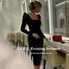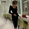 Lorie vestido de noite estilo sereia, manga longa, com decote quadrado, veludo, comprimento do chá, vestido de baile, casamento e festa