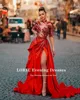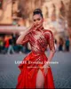 Lorie alta costura árabe vestido de noite alta pescoço frisado com rhonestones vermelho manga longa sexy dubai vestido de baile vestidos de festa