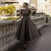 Sodigne preto pontilhado feminino vestido de festa o pescoço mangas curtas modesto formal baile de formatura vestido a linha desossando vestidos de noite expostos