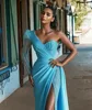 Sodigne lantejoulas shinny um ombro vestido de baile mangas compridas dividir arábia saudita noite formal festa vestidos feitos sob encomenda