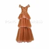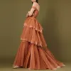 Elegante tule fora do ombro até o chão do baile de formatura vestidos em camadas babados formais vestidos de noite feitos sob encomenda de fiesta
